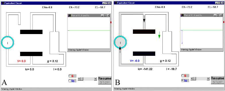 The equivalent circuit of the axon membrane includes ionic pathways and a capacitor (see Fig. 2). When the voltage is constant, the current through the capacitative pathway is zero because the capacitor has acquired the charge Q according to the relationship