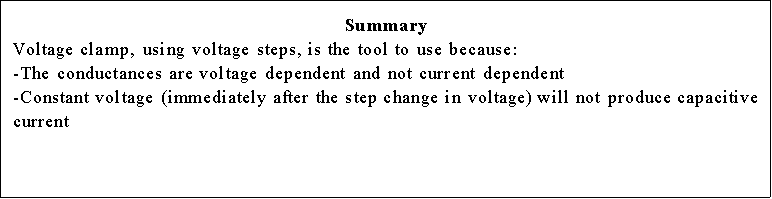 We have learned that the Na and K channels in the axon change their open probability depending on the voltage across the membrane and in fact the Po is independent of the current flow. Therefore it is natural to study the properties of the membrane under voltage clamp instead of current stimulation because membrane potential is the variable that controls channel opening.