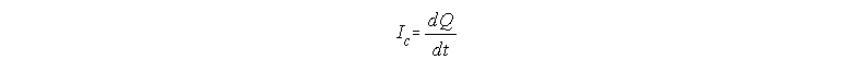 We must ask first, how does the capacitor acquire the charge Q when the potential is changing from 0 to V? The answer is by allowing a flow of charge (ions) towards the plates (the membrane surfaces) and this flow constitutes an electric current which we will call Ic. We can calculate this current easily if we remember that current is the flow of charge, or the amount